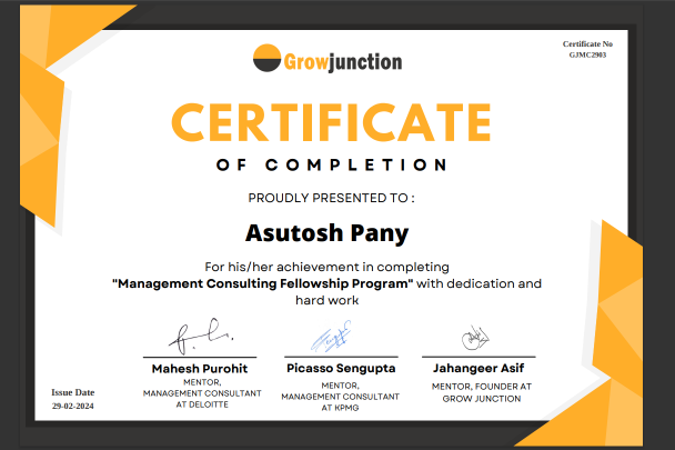 After completion of Program, you can put on your CV and LinkedIn as Fellow Management Consultant at Grow Junction (Our program is equivalent to experience and which is more valuable in the eyes of recruiters)